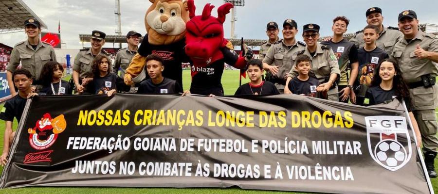 A Federação Goiana de Futebol (FGF) realiza, em parceria com a Polícia Militar do Estado de Goiás (PM-GO), campanha de conscientização e combate às drogas e à violência durante as partidas realizadas pelo Campeonato Goiano 1xbet 2023. A última atividade foi realizada no estádio Antônio Accioly, antes do jogo de semifinal Atlético x Aparecidense.