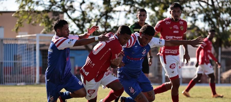 Trindade e Vila Nova se enfrentaram, nesta quinta-feira (13), no primeiro jogo da final do Goianão Sub-20 2024. Em partida realizada no Abrão Manoel da Costa, em Trindade, as equipes empataram pelo placar de 1x1. O Tacão saiu na frente e o Colorado acabou buscando o empate na sequência da partida.