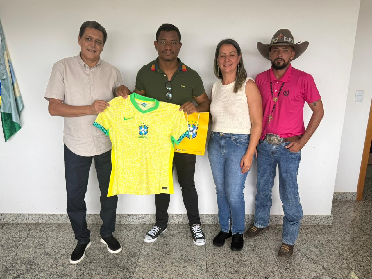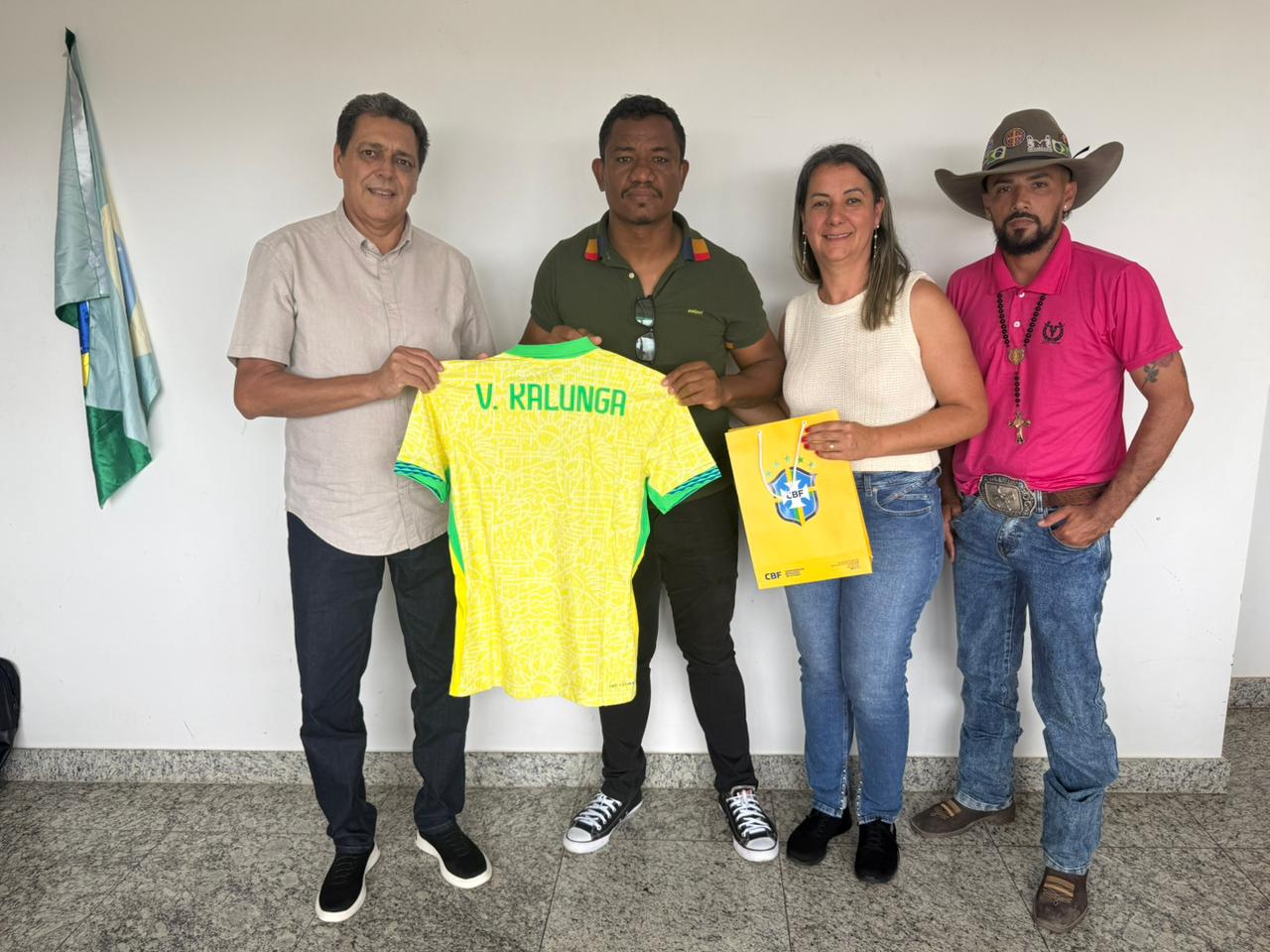 Estiveram presentes o secretário de esportes Índio, a vice-prefeita Celiara Cristina e o vereador Roney Cowboy. Além dos materiais esportivos, a FGF, através de seu presidente Ronei, presenteou o prefeito de Cavalcante, Vilmar Kalunga, com uma camisa oficial da Seleção Brasileira de Futebol.