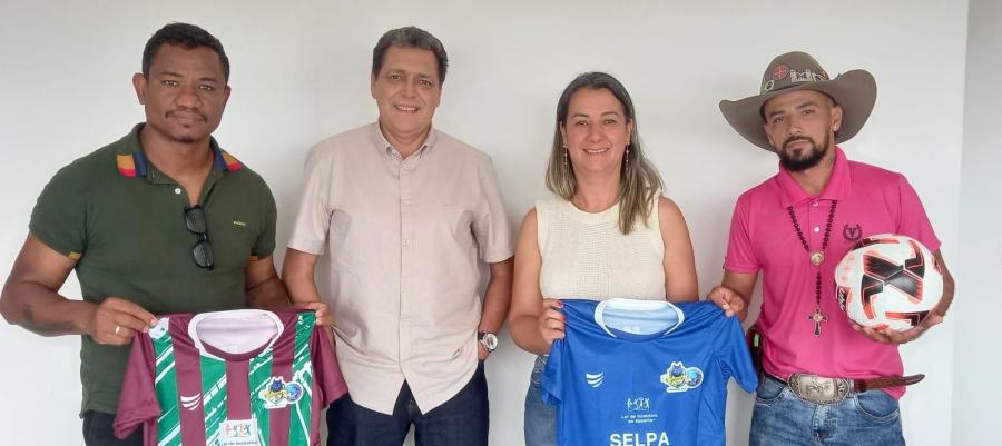 A Federação Goiana de Futebol (FGF) recebeu, nesta quinta-feira (22), diretores do A. Engenho II – Kalunga, e autoridades da cidade de Cavalcante-GO. Na ocasião, o presidente da FGF, Ronei de Freitas, realizou a entrega dos materiais esportivos para as equipes de formação do Engenho II Kalunga, equipe recém-filiada à FGF.