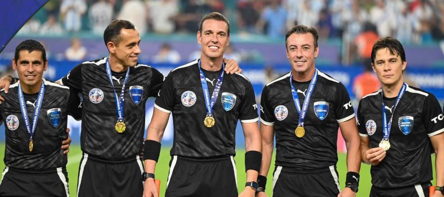 O árbitro assistente Bruno Pires, do quadro de arbitragem da Federação Goiana de Futebol (FGF), foi premiado com medalha de ouro após atuar na final da Copa América, jogo entre Argentina x Colômbia, no último domingo (15). Bruno compôs a equipe de arbitragem brasileira comandada por Raphael Claus-SP no campo, com a participação do assistente Rodrigo Correa e do VAR Rodolpho Toski.